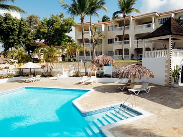 Perched on the scenic hills overlooking the resort, the Crown Suites Penthouse offers a premier 2-bedroom retreat designed for up to 6 guests. Just a short walk from Cofresí Beach, this elevated escape blends Caribbean charm with comfort, space, and stunning views for an unforgettable vacation experience.