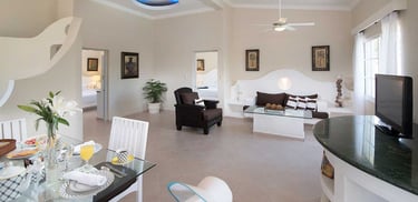 This spacious penthouse suite features two bedrooms, two bathrooms, a separate living area, and a fully equipped kitchenette. A private balcony or terrace provides breathtaking views of the resort and surrounding landscape, while full air conditioning ensures a comfortable stay throughout.