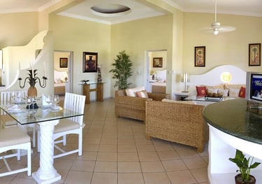 Experience a refined Caribbean escape in a spacious 2-bedroom Royal Suite, accommodating 4–6 guests. Just steps from the golden sands of Cofresí Beach, these Mediterranean-style suites offer beautifully appointed living spaces, a private living and dining area, and thoughtful amenities designed for comfort and relaxation.